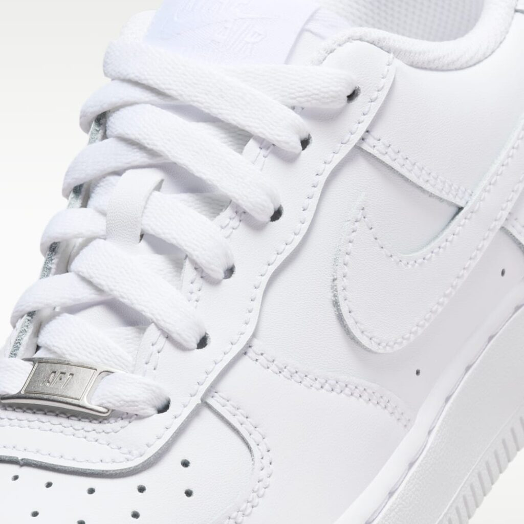- Le cuir véritable et le cuir synthétique ajoutent style traditionnel, durabilité et soutien, tout comme la Air Force 1 sortie pour la première fois en 1982.