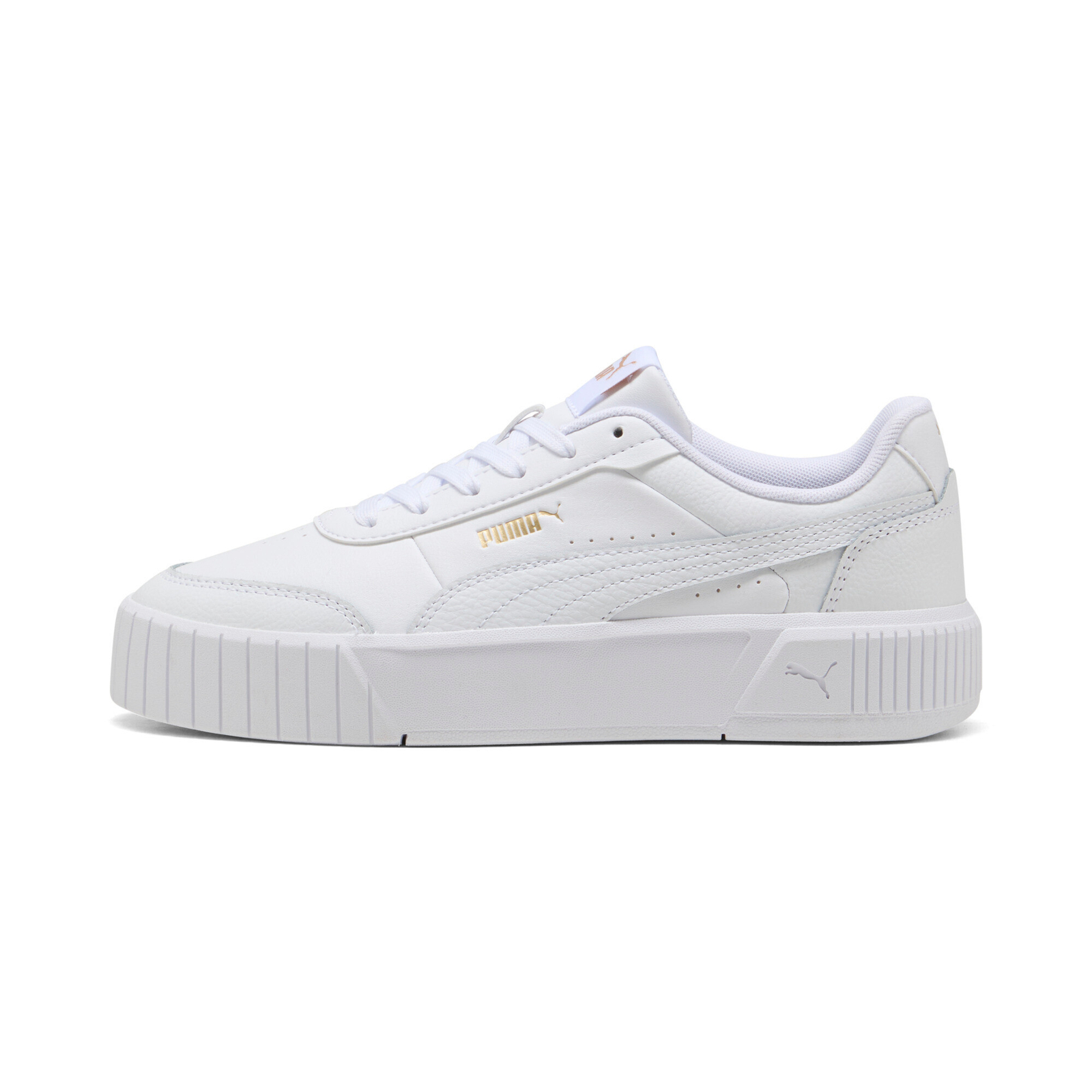Les baskets Puma Carina Mia incarnent à la perfection style et confort pour la femme moderne. Leur bout arrondi et leur élégante plateforme haute allongent visuellement la silhouette, lui conférant une allure légère et dynamique. L’association de cuir véritable et synthétique sur la tige assure durabilité et un style affirmé, tandis que les perforations sur le bout et les côtés garantissent une respirabilité optimale.