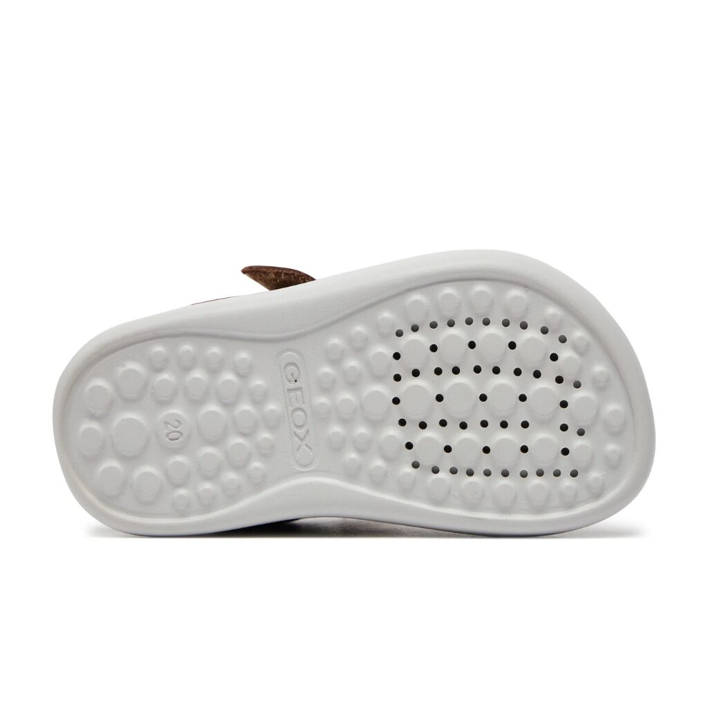 Les sandales d’été Geox sont idéales pour les enfants qui privilégient le confort et la liberté de mouvement. Confectionnées en cuir nubuck souple , elles offrent douceur et résistance pour les promenades quotidiennes. Grâce à leur fermeture Velcro, elles s’enfilent rapidement et facilement, un atout pratique pour l’enfant comme pour le parent. L’avant ouvert procure une sensation de légèreté, tandis que la technologie Geox Respira favorise la circulation de l’air et contribue à maintenir une température optimale à l’intérieur de la chaussure. Ces sandales confortables deviendront vite l’accessoire préféré des petits pieds.